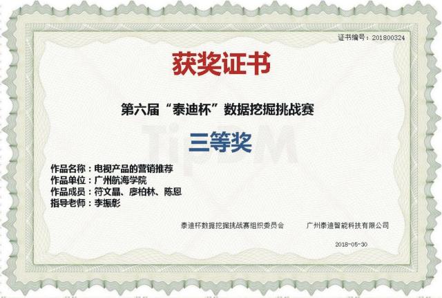 “泰迪杯”数据挖掘挑战赛(以下简称挑战赛)是由泰迪杯数据挖掘挑战赛组织委员会主办,广州泰迪智能科技有限公司承办,广东省工业与应用数学学会协办的面向全国在校研究生和老员工的群众性科技活动。举办挑战赛的目的在于以赛促学,激励员工学习数据挖掘的积极性,提高员工分析、解决实际问题的综合能力;以赛促教,推动数据挖掘技术在高校的推广和应用;以赛促研,为高校相关智力资源转化为推进国家大数据战略的生产力提供合作平台。第六届“泰迪杯”数据挖掘挑战赛于2018年3月1日正式开始,至2018年4月18日截止提交附件,历时一个半月。竞赛共计有来自全国300多所高校3016支队伍报名参赛,由高校和公司共同组成的评审专家组历时一个月的评审,最后决出特等并获企业冠名奖作品3份、特等奖作品3份、一等并获信诺创新奖3份、一等奖作品50份(含专科组2份)、二等奖作品145份(含专科组4份)、三等奖作品297份(含专科组5份)、成功参赛作品951份、以及最佳组织奖35份(针对学校)。